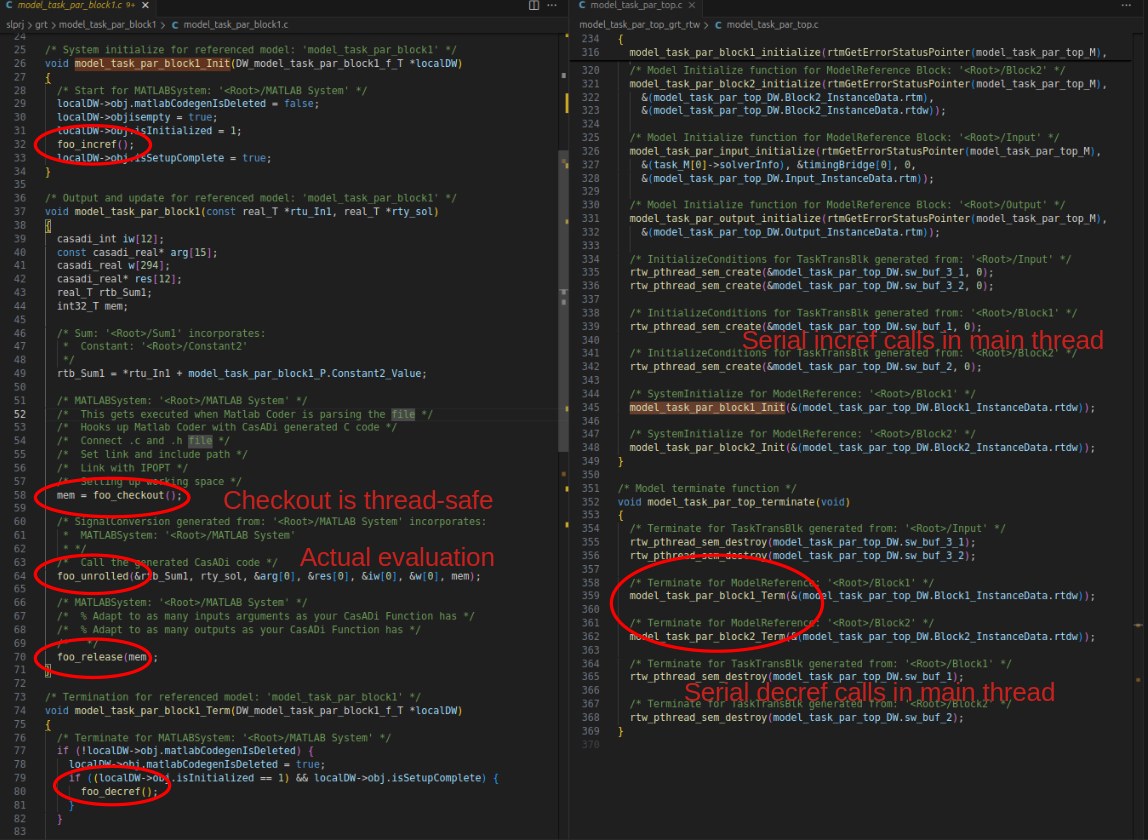 We gave a tour of advanced integration of Simulink with CasADi code-generation in a context of multi-threading.